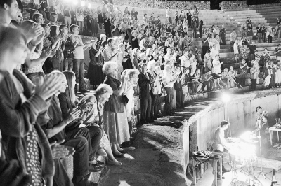 7月25日晚,在馬其頓的比托拉,觀眾觀看莎士比亞歷史劇《理查三世》后起立鼓掌。當日,中國國家話劇院在馬其頓西南部小城比托拉具有近兩千年歷史的古羅馬式露天劇場演出莎士比亞歷史劇《理查三世》,這是比托拉莎士比亞戲劇節上的壓軸大戲,也是中馬建交20年來兩國最高級別的文化交流。《理查三世》在服裝、布景及表演方法上采用了大量中國傳統文化與戲劇、戲曲元素。