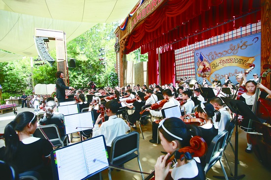 在我國中小學形形色色的藝術團隊中,有一支被音樂界親切稱為“小金帆”的交響樂團——北京市海淀區(qū)中關村二小金帆交響樂團,它是北京冠以“金帆”的藝術社團中唯一的一支小學生金帆樂團,也是國內唯一一支全部由小學生組成的交響樂團。近些年每逢暑假,“小金帆”即會應邀赴歐美等國參加各種藝術節(jié)和比賽。今年7月21日至28日,“小金帆”赴美展開“樂夢·美之旅”音樂交流系列活動。“小金帆”的孩子們參加藝術節(jié)、上大師課、義演,凝聚著汗水和少年智慧的動人旋律灑落在大洋彼岸的大學校園、音樂廳、教堂、敬老院、迪斯尼樂園等場所,一個個小小演奏家品嘗到了成功的喜悅和音樂帶給他們的巨大幸福和榮光。