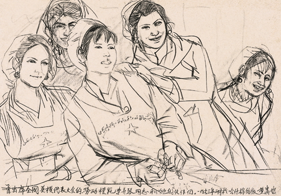 勞模大會的伙伴們(速寫) 1963年 黃 胄
