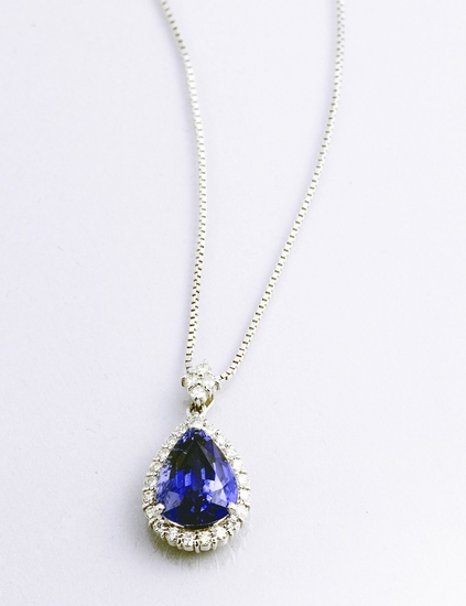藍(lán)寶石鉑金鑲鉆吊墜項(xiàng)鏈