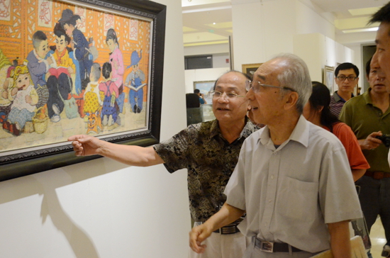 北京油畫學會法定代表人、常務副主席郭印川與中國美協原主席、北京油畫學會主席靳尚誼參觀展覽 高晴 攝