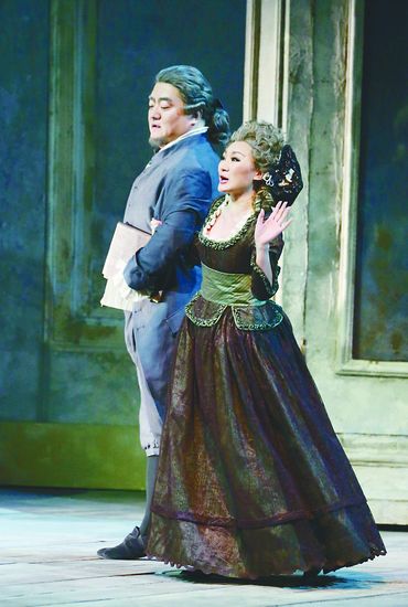 張卓(右)在《費加羅的婚禮》中飾演女管家瑪爾切利娜