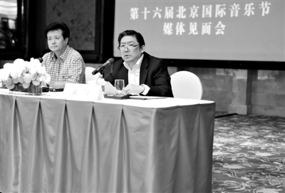 昨日,主辦方宣布第十六屆北京國際音樂節將于10月4日開幕。中國指揮家余?。ㄓ遥┈F場發布音樂節消息。 新京報記者 秦斌 攝