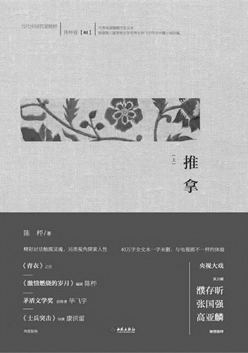 陳枰即是電視劇《推拿》的編劇。今年7月,西苑出版社出版了她的電視劇劇本《推拿》,全書分上下兩冊(cè),四十余萬(wàn)字,其電子版圖書也在各個(gè)電子圖書平臺(tái)陸續(xù)上線。