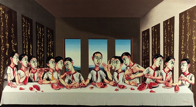 《最后的晚餐》創(chuàng)作于2001年,是曾梵志《面具》系列中尺幅最大的作品。