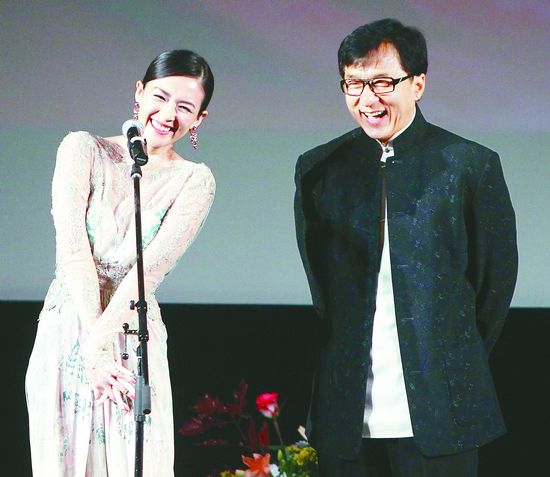 圖為9月4日成龍(右)和章子怡參加2013年中國電影節開幕式。