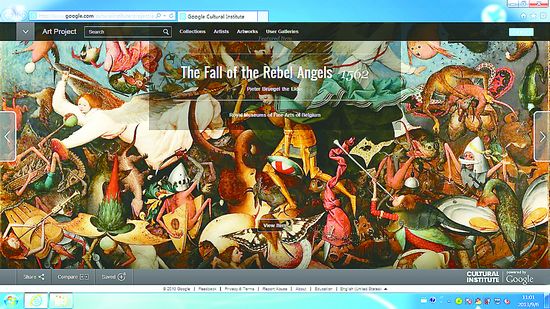 谷歌藝術計劃是由谷歌與全球各地數百家藝術機構共同完成的項目,已于2011年2月1日正式上線,當時有9個國家的17個博物館共1000幅作品參與其中。隨著項目的不斷推進,如今已經有來自全球44個國家264家藝術機構的40000件藝術作品可以在線瀏覽。既有來自南非的巖石設計、巴西的街頭涂鴉,也有來自中國的文物。圖片清晰度甚至可達10億級像素,比一般數碼相機所拍攝的照片清晰1000倍;同時用戶可以按照自己的喜好整理喜愛的作品;前文說到的對比功能雖然在目前看來還不夠完善,但對普通觀眾和藝術研究者來說已是一個難得的好工具;除此之外,谷歌還為用戶提供了社交網站分享功能,甚至為中國用戶單獨提供了適合的分享渠道;另外還提供了虛擬展覽和虛擬瀏覽功能。