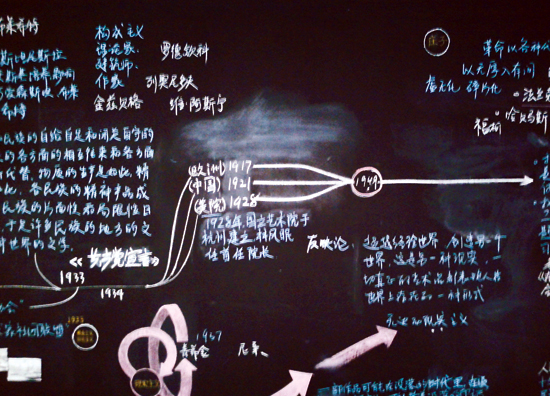 展覽“歷程”板塊中的黑板報一角,從中不難看出國美85年歷程始終嘗試與世界發生聯系