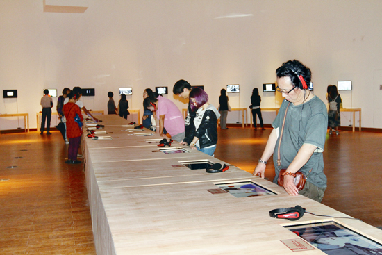 當然,一個小小的道具箱并不能滿足觀眾對那些響亮名字的期待,策展方自然也想到了。在每個箱子的一側,都有一小塊LED屏,滾動播出那些名字背后的故事。陸儼少的畫作為何常有婉約之氣,谷文達實驗水墨的創作緣起,黃永砯典型化符號語言的解讀,還有第一個道具箱的擁有者艾青,意象化的影像配以抒情的詩句:過了多少億年,在巖層里發現你,依然栩栩如生。據了解,這85位藝術家的影像總時長在30小時左右,由中國美術學院近百位在校師生組成的一個青年劇組于今年3月至8月拍攝制作完成。從形式語言到影像風格無不凸顯了當下的立場與態度,展示了策展團隊對85個“發光體”的歷史化解讀。自然,短短幾分鐘的影像只是一個橫斷面,是策展方對藝術家的形象化描述,而非藝術家本人的自我言說,這也是當下藝術場域中策展人話語權力的一個鮮明表征。