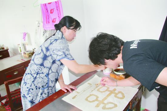 來自智利的學員在民間技藝傳承人的指導下繪制蠟染作品