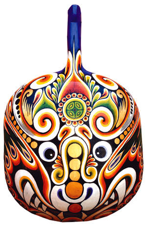在追溯、研究古今臉譜藝術(shù)衍變的同時,張星深刻理解其真諦,終于他發(fā)現(xiàn),所謂繼承與發(fā)展,就在于讓臉譜藝術(shù)沖破具象環(huán)境的束縛,煥發(fā)出另一種奇特的具有含蓄、幽默、鋪陳的效果,讓色彩、圖案、線條等穿插變化,將社火的某種夸張抽象化、藝術(shù)化,使其產(chǎn)生異麗的藝術(shù)效果。