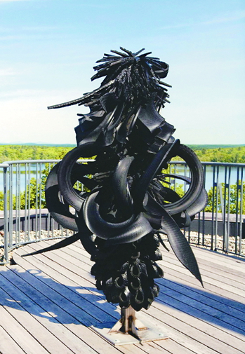 在今天的創作中,有雕塑家卡卡婭·布爾克用黑色輪胎制作的《周而復始》和雷·史密斯用深色木材制作的《瑪麗安娜》等雕塑作品,也有喬伊斯·潘塞多用類似涂鴉的方式創作的《金色蝙蝠俠》和羅伯特·隆戈帶來的《鯊魚》等具象繪畫,還有拉希德·約翰遜在純黑色塊中尋找變化描繪的“荷蘭人”的抽象繪畫。這種視覺上的大開大闔以及對戲劇化題材的青睞,使作品極具心理學意味,使得觀眾在已有的視覺系統里對不斷變化和發展的西方藝術有了進一步的視覺更新和認知更新。