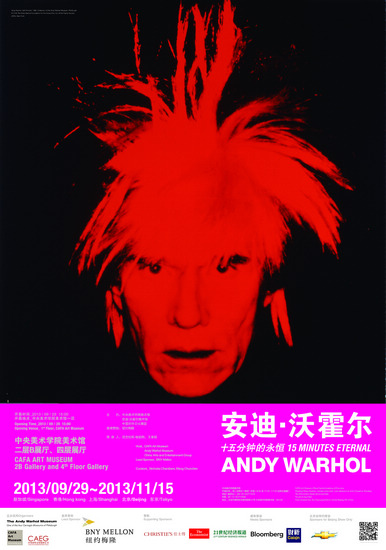 人們喜歡安迪·沃霍爾,因為他成功預見并實踐了商業社會中藝術所能發揮的最大功效。諸如每個人都有可能成為明星(選秀節目)、藝術與時尚存在天然的聯系(藝術家跨界設計、創辦刊物、拍攝MV)等等,當今社會中每天都在發生的種種,安迪·沃霍爾早已成功踐行過并被后來者視為榜樣。從這點看,安迪·沃霍爾是屬于世界的,并以各種不同的方式被各個商業社會形態下的普通人所接受。當然,不能忽略的一點是,安迪·沃霍爾本人及其藝術創作,與批評家、收藏家、藝術機構、大眾,甚至是美國政府一起合謀將“安迪·沃霍爾”推向了世界當代藝術的頂峰,并將其塑造成為一個“美國夢”的代表。這不單是成功地將世界藝術中心由巴黎轉向紐約,其背后還衍生出一整套消費社會的“造夢邏輯”。在安迪·沃霍爾的家鄉匹茲堡有一座7層樓高的安迪·沃霍爾美術館,它的守護者夏納館長通過在此展示數百件和他有關的展品,吸引著全世界的安迪·沃霍爾愛好者來此朝圣。美術館每年有計劃地將他的藝術以學術的方式推向世界。與此同時,安迪·沃霍爾基金會則負責通過運作其生前留下的遺產,以資本的方式實現他的遺愿繼續資助藝術與藝術家,就像他生前曾悉心提攜過的巴斯基亞、克萊門特、哈林一樣。紐約大都會博物館、古根海姆博物館等知名藝術機構,則會在每年的不同時段,通過特展的方式,不斷闡釋和挖掘安迪·沃霍爾之于當今社會、當代藝術的價值。蘇富比、佳士得等西方拍賣行更是會在每年的春秋重點拍場上,以顯要位置推廣安迪·沃霍爾的作品,并使其佳作屢創成交紀錄。而分布于世界各地的多個社會群體,如電視臺、商業周刊、時尚畫報等總會在每年的某個時段,以一種全新方式將他與當下關聯起來,在他們看來,談安迪·沃霍爾永遠不會過時。“安迪·沃霍爾”早已成為一個符號,它代表著商業與藝術成功聯姻的典范。如果我們留意一下,本次中國展覽的贊助者與支持者就會發現,財團才是促成安迪·沃霍爾大批作品得以來華的關鍵所在,其間伴有商業媒體的大肆鼓吹。紐約梅隆財團代表借用安迪·沃霍爾的話語,表達了“優秀的商業運作同樣是一種藝術”。展覽公共項目支持者雪佛蘭汽車的代表同樣在安迪·沃霍爾的創作中找到了與自身品牌的契合點,“藝術從來不是高高在上的,而是應努力融入生活的”。這就是安迪·沃霍爾的魅力所在:即便已然到了信息時代,我們仍可以從其藝術世界中找到某個與當下的關聯。作為一個藝術家,安迪·沃霍爾的藝術創作具有敞開性與前瞻性,其試圖將藝術與生活邊界徹底模糊的種種嘗試,如今看來,依然具有鮮活的生命力。