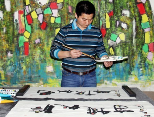 何柏俊,就是一位年輕、富有創(chuàng)新意識的客籍書畫藝術(shù)家。他1973年出生于廣東梅縣一個小山村,幼時喜歡舞文弄墨,對書法和古文有著很濃的興趣。在其父親何其洪先生的啟蒙下,自小臨摹《柳公權(quán)玄秘塔》、《曹全碑》、《張遷碑》、《禮器碑》、《蘭亭敘》等著名碑帖,練就了他那深厚的書法藝術(shù)功底。