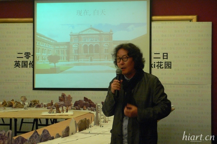 應(yīng)英國(guó)倫敦的維多利亞和阿爾伯特美術(shù)館(Victoria andAlbert Museum,簡(jiǎn)稱V&A美術(shù)館)的邀請(qǐng),徐冰在該美術(shù)館的中庭花園(John Madejski Garden)創(chuàng)作完成其近年來(lái)規(guī)模最大的作品之一。作品在花園的古典建筑及倫敦工業(yè)文明的都市背景下,選擇中國(guó)的山石與陶瓷來(lái)造景完成。徐冰認(rèn)為,在中國(guó)傳統(tǒng)文化中,盆景寄托了中國(guó)文人對(duì)于自然中有限美感資源的無(wú)限想象。中國(guó)傳統(tǒng)文人畫(huà)中,以石勢(shì)見(jiàn)山,以花草見(jiàn)自然。徐冰從中國(guó)各地選擇8種不同的山石作為裝置的主要材料,其分別對(duì)位于傳統(tǒng)繪畫(huà)中山石的畫(huà)法。但又有意選擇扁平形狀的山石,制造出介于二維繪畫(huà)與現(xiàn)實(shí)三維之間的“二維半”效果。不難看出,徐冰以一種理想主義的議題對(duì)中國(guó)傳統(tǒng)繪畫(huà)及文化精神的深度討論。“有立有破”,在發(fā)布會(huì)現(xiàn)場(chǎng),徐冰表示,在如此巨型的裝置中,完成石頭的擺放絕非易事,在遭遇瓶頸時(shí),他會(huì)回到傳統(tǒng)山水繪畫(huà)中尋找靈感。