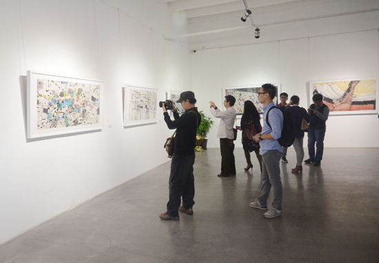 展覽現場嘉賓觀看畫作 中國文藝網 黃遠 攝