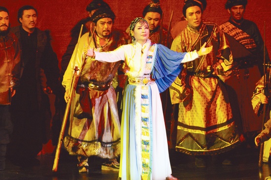 10月10日,在山東煙臺(tái)大劇院,著名女高音歌唱家殷秀梅在表演歌劇《紅河谷》。當(dāng)日,一部《紅河谷》拉開第十屆中國(guó)藝術(shù)節(jié)“文華獎(jiǎng)”作品展演序幕。著名女高音歌唱家殷秀梅在劇中飾演藏族姑娘丹珠。這是中央音樂學(xué)院歌劇系科班出身的殷秀梅在離開歌劇舞臺(tái)28年后,重返歌劇舞臺(tái)。