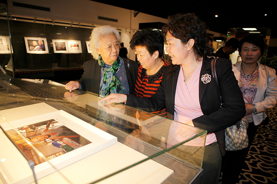 中國世界民族文化交流促進(jìn)會(huì)會(huì)長馬小玫觀看《異彩中華·孝和天下》展覽