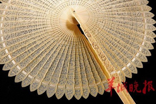 3.十八世紀象牙通雕開光山水亭臺花卉圓形折扇