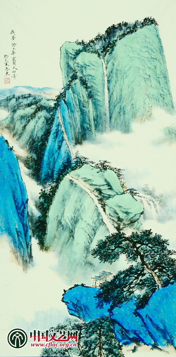 楊惠東在“八方山水——中國山水畫家邀請巡回展”中展出的青綠山水,每幅作品都有不同的追尋,我們從《空中樓閣》中,可以領略到這一批作品深刻的立意、嚴謹的筆墨與色彩的制作。藝術的意味與精彩的技藝高度結合,讀后使人贊嘆!