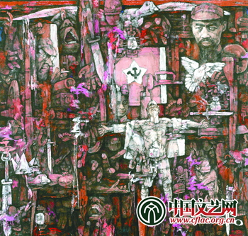 長征系列NO.3湘江血·涅槃(中國畫) 290×310cm 施大畏