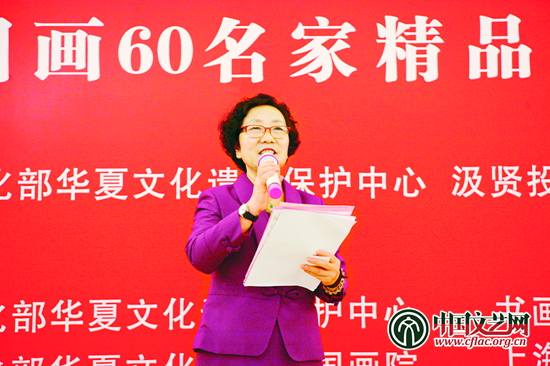 文化部華夏文化遺產(chǎn)中國畫院副院長陳麗能宣讀關(guān)于成立上海汲賢分院的批文