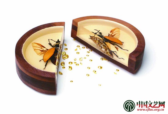 “跨界”作為當代藝術領域重要的新生概念,集中體現出藝術家突破邊界與富于探索的精神。金屬藝術也在跨界的實驗中,使得原本毫無關聯,甚至矛盾、對立的各種元素之間迸發出靈感的光亮。臺灣藝術大學教師趙丹綺笑說自己最愛玩兒技法:“這次來參展的作品《核與膜》,我使用的是一種很古老的技法——粟紋法。通過查閱以前的文獻資料,我發現它是將金屬事先制作成一顆顆細小的珠子,再將它們熔接、排列成各種圖案。這種技法無比繁復、充滿變量,也非常有挑戰性。在作品中,我以金屬點代表細胞內各種水分、養分和組織,然后通過它們的聚集架構起復雜而完整的生命體。”
