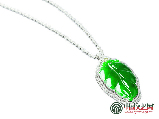 翡翠綠葉18K金鑲鉆吊墜項(xiàng)鏈