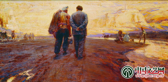 1999年,中國油畫學會要舉辦20世紀中國油畫展覽,找到鐘涵,提出請他重新再畫一張。“我已經不記得尺寸有多大,只記得長寬比大概是2比1,印象也不太清楚。”后來才知道比原作小了些。憑借印象畫完后,中央美院陳列館的老同事跑來,告訴他:《延河邊上》找到了,在陳列館的倉庫里,用草繩捆著,塞得亂七八糟。如今面對這兩張皆被中國國家博物館收藏的“同一張”作品,鐘涵言談中有點糾結,他不能評判,哪一張更好:“1999年這張,技巧有些進步,造型能力也提高了一些,我也在努力保持當年畫的感覺和回憶。60年代的原畫,技巧差,但其中有一個青年畫家的執著狀態,它一直在那里。”