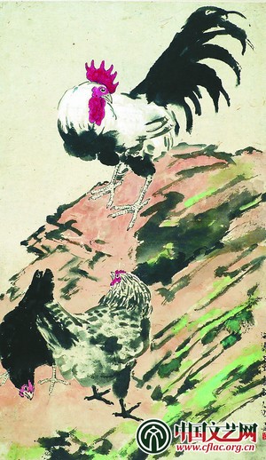 三雞圖軸(紙本設(shè)色) 徐悲鴻 中央美術(shù)學(xué)院美術(shù)館藏