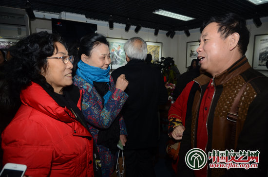 著名人物畫家、山西美協副主席狄少英到場祝賀并與李秀峰進行熱切交流 單鳴 攝