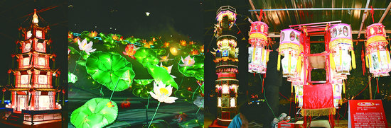 陜西民協制作的彩燈《花好月圓》,體現的主題為“花好月圓人長壽,風調雨順歲平安”,表達了人民群眾熱愛生活和向往美好未來的虔誠心愿;福建民協選送的彩燈《荷塘月色》,燈組造型由荷葉、荷花及蓮蓬等構成,完美地表達了“接天蓮葉無窮碧,映日荷花別樣紅”的景觀場面;參展的《百鳥朝鳳》,在12米的平臺上展現出百鳥前來朝賀鳳凰的壯麗場面,以此體現出中華各民族向往和平與祈福平安的傳統寓意;來自山東民協的彩燈《論語》,作品出于對孔子的由衷愛戴與尊敬,別出心裁地制作出人物與書籍交相輝映的燈彩藝術,并通過觀眾喜聞樂見的表現手法,再現了一代圣人的睿智與慈祥;鬧春是一種民間習俗,四川省民協選送的《鬧春圖》描繪了一個形態可掬的童子俏皮地提著喜慶吉祥的燈籠,歡天喜地迎接春的到來,預示新年吉祥如意,來年繁榮昌盛。