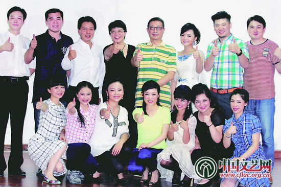 江蘇茉莉花民樂組合(前排左起):童瑩,劉湘蕓,顧懷燕,李霓霞,胡曦雯,蔡超,潘婷;(后排左起):何方方,劉強,朱杰文,江蘇省音協駐會副主席、秘書長楊麗娟,茉莉花民樂組合藝術總監崔新,任潔,李奧博,劇務王鵬飛
