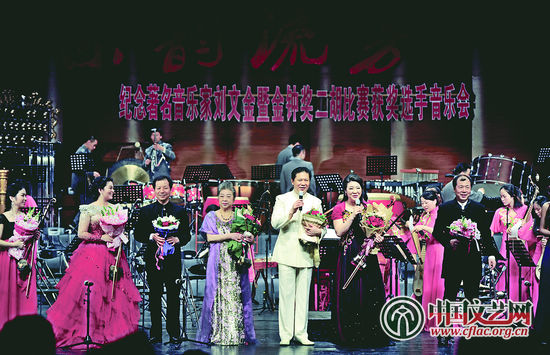 著名二胡演奏家閔惠芬、宋飛、周維與本屆金鐘獎獲獎選手們在“紀念著名音樂家劉文金暨金鐘獎二胡比賽獲獎選手音樂會”上