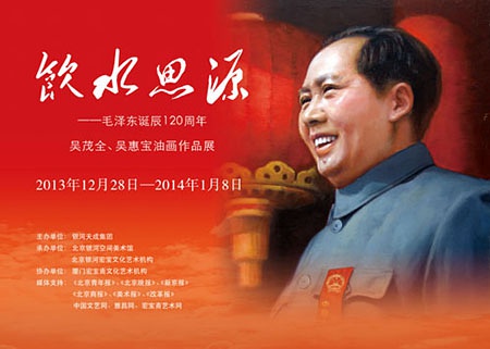 2013年12月26日,是毛澤東主席誕辰120周年紀(jì)念日。為了表達(dá)對毛主席的崇敬之情,著名畫家吳茂全先生、吳慧寶女士精心繪制了三十幅毛主席油畫肖像,赴京舉辦畫展。12月28日,由策展人、銀河空間美術(shù)館館長張宏策劃的《飲水思源-毛澤東誕辰120周年——吳茂全、吳慧寶油畫作品展》于北京銀河空間美術(shù)館開幕。