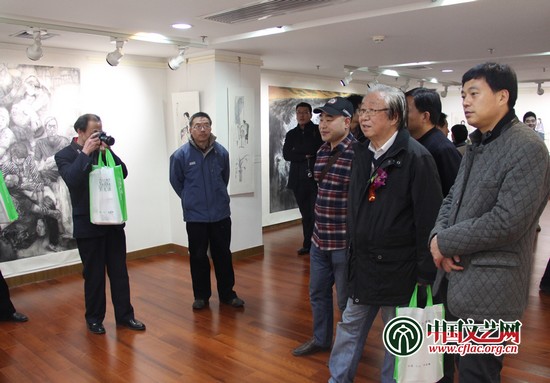 趙曼新年水墨展受到了美術界和廣大觀眾的極大關注,圖為孫克等嘉賓觀看展覽