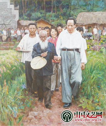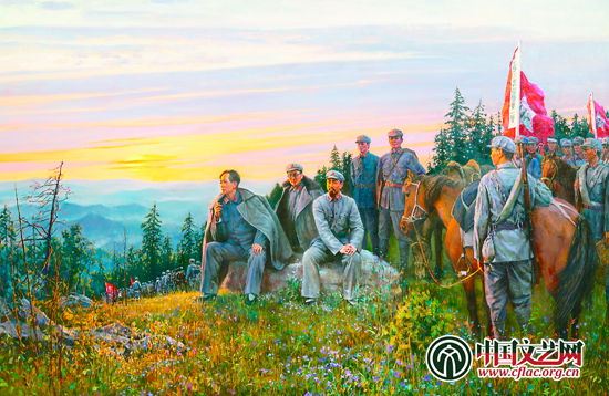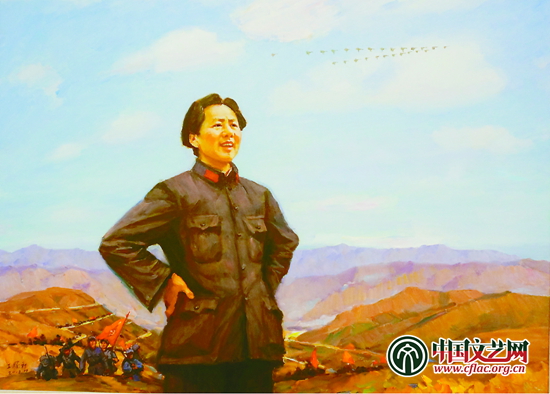 毛澤東詩詞為中華民族文化藝術創(chuàng)作提供了取之不竭、用之不盡的深厚源泉。在新中國美術史上,曾產(chǎn)生了《江山如此多嬌》《萬山紅遍》等一大批享譽海內(nèi)外的優(yōu)秀作品。可喜的是,這個優(yōu)良傳統(tǒng)已被當代藝術家繼承和發(fā)揚。此次美展,匯集了中國美術館館藏的中國畫和新創(chuàng)作的數(shù)十件油畫,以及表現(xiàn)毛澤東形象的雕塑作品,從中我們可以看到,毛澤東詩詞意境是美術創(chuàng)作持續(xù)的主題。當代油畫家們以唯物史觀為指導,追尋毛澤東詩詞創(chuàng)作和發(fā)表的歷史背景,身臨其境實地考察、查閱資料、反復斟酌、深入研究,同時綻開想象力,運用嫻熟的油畫語言,精心創(chuàng)作了一幅幅氣勢恢宏、畫風清新、民族特色濃厚的作品,藝術地再現(xiàn)毛澤東詩詞反映的歷史人物、事件和場景,展示了毛澤東詩詞中所蘊含的深邃哲理和美學意境。