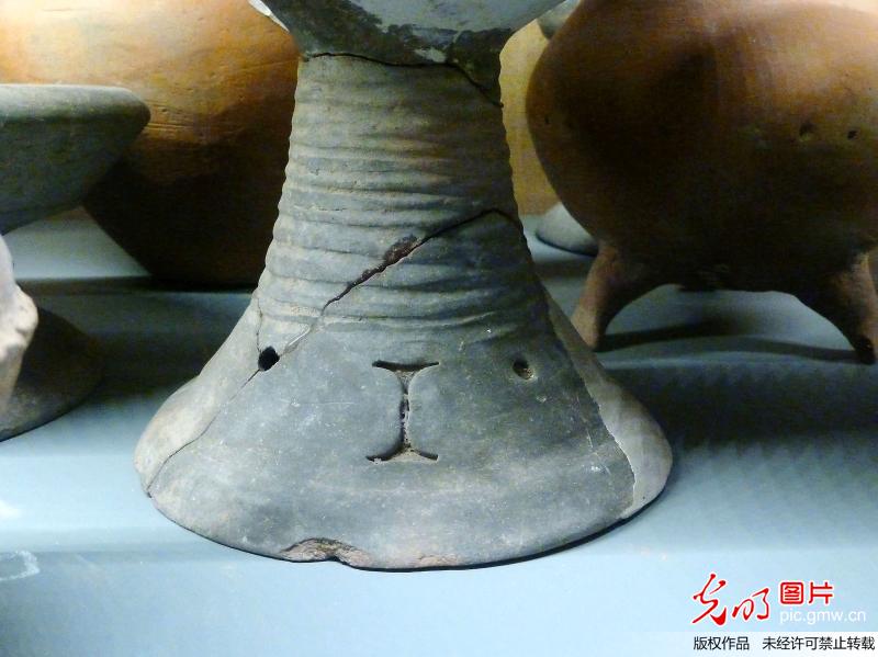 2014年1月5日,南京博物院歷史館,酷似動漫"越獄兔"的陶豆紋飾 王路憲攝