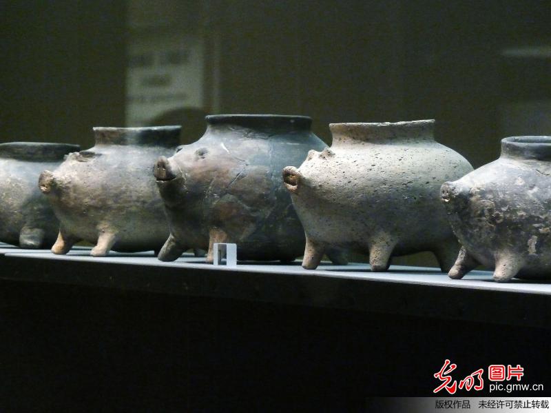 2014年1月5日,南京博物院歷史館,大小不一表情各異超可愛的一組豬形陶罐 王路憲攝
