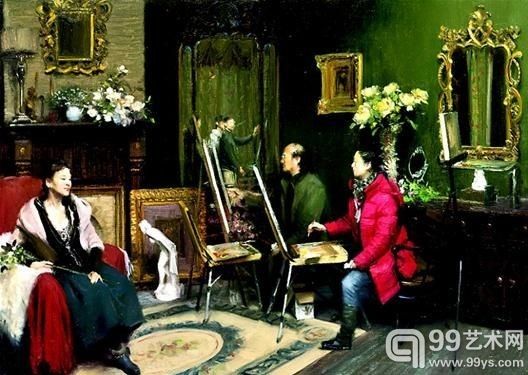 “它們與我的審美追求有一致的地方,它表現出我追求的藝術的傳統性和嚴謹性?!崩滠娬f,《畫室》系列要呈現經典油畫的構圖、光色、繪畫感,這與當代藝術不同,“當代藝術大多傳遞觀念,有時和技法無關,而要擁有傳統油畫表現的情趣,就一定要有技法的承載?!?/p>