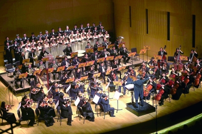 作為國家圖書館藝術(shù)中心與中國東方演藝集團(tuán)日前簽訂戰(zhàn)略合作協(xié)議后的首場演出,音樂會為聽眾帶來了《納布科》、《游吟詩人》、《茶花女》、《厄爾南尼》、《弄臣》、《唐·卡洛》、《西西里晚禱》等歌劇經(jīng)典選段。音樂會由中國東方演藝集團(tuán)董事長顧欣指揮。音樂會上,交響樂團(tuán)、合唱團(tuán)與指揮配合默契,樂曲飽滿厚重,給觀眾以美的享受。在音樂會下半場,選自歌劇《阿依達(dá)》的著名樂章《凱旋大合唱》掀起了演出高潮,小號演奏家們在二樓觀眾席一側(cè)與樂團(tuán)相互應(yīng)和,觀眾紛紛跟著熟悉的樂曲打起了節(jié)拍。為答謝觀眾,中國東方演藝集團(tuán)交響樂團(tuán)還返場演奏了《命運(yùn)的力量》序曲,顧欣還特別為觀眾演唱了《女人善變》和《飲酒歌》兩首名曲,博得觀眾陣陣喝彩。