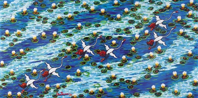 據介紹,為了此次北京行,查睿福專門創作了一些作品,類似一系列以初開的白百合為主題的油畫及雕塑,畫面中鮮花與仙鶴“揚起”曼妙舞姿再度傳遞了自然的神奇。她最新的兩座巨型睡蓮雕塑也屬首度亮相。