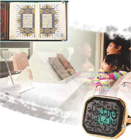 巧奪天工的展品當(dāng)然也有。土耳其著名的地毯、禱告毯就不必多說了,足足排滿了整面墻的櫥窗。走到這里,不妨仔細(xì)看看展柜里的與古蘭經(jīng)盒。這本1577年在先知寺書寫完成的《古蘭經(jīng)》,采用“納斯赫體”書寫,每頁15行經(jīng)文被藍(lán)色花紋圖案環(huán)繞在正中,優(yōu)雅美麗,棕色皮革封面飾有“獎?wù)碌鯄嫛眻D案。用于保存手稿尤其是古蘭經(jīng)的古蘭經(jīng)盒同樣精美,優(yōu)雅造型,鑲嵌著象牙材質(zhì)的各種圖案,天衣無縫。