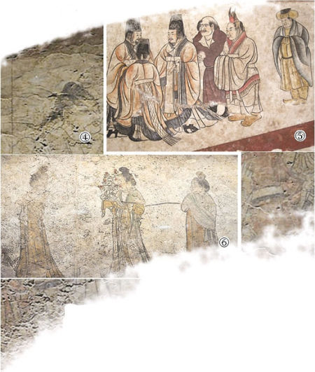 穿著初唐朝服、手執(zhí)笏板的男人神情嚴(yán)肅,這是墓道東壁“客使圖”所繪的情景。章懷太子即武則天的次子李賢?!翱褪箞D”是唐代墓葬壁畫的精品,描繪的是唐代的外交機(jī)構(gòu)接待外國使節(jié)的場景。