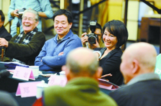 人藝一樓排練廳正是《甲子園》的排練場,去年七八月間這部戲就在這里醞釀、誕生。但這次大家不再是你來我往地對臺詞,而是像閑敘家常似的圍成一圈坐在一起。今年整90歲的朱琳,不顧大家的勸阻,顫顫巍巍地非要站起來發(fā)言,“你們看我這樣,真的是演不了戲了,今天我是來看大家的,也是來告別的。”平時總愿讀幾句詩的老人,又即興地改了幾句詩來鼓勵年輕人,“人家都說‘長江后浪推前浪’,我要說‘長江后浪越前浪,一浪更比一浪高’!”