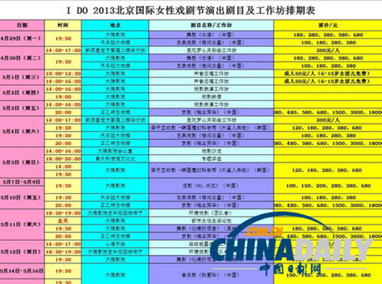 2013北京國際女性戲劇節(jié)還特別設(shè)置的戲劇生活單元,其中包括觀眾與藝術(shù)家一起參與的I Do藝術(shù)工作坊、朗讀沙龍、愛的儀式之信箱計(jì)劃、公益活動等。在這些活動中,觀眾可以與“藝術(shù)”近距離接觸,讓更多觀眾在“玩兒”中感受藝術(shù)帶來的樂趣和啟發(fā)。