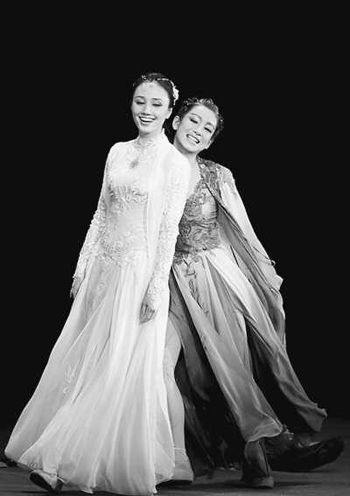如此深沉的話題,如果沒有亦莊亦諧的舞臺呈現(xiàn)和雅俗共賞的臺詞,就會變成刻板的布道。話劇充分地展示語言的魅力,吸收宋明話本語言的世俗生動特點,結(jié)合現(xiàn)代語言的簡潔明了,同時以單口、群口襯托對話,構(gòu)成語言的交響、混響效果,還原和再現(xiàn)生活本身的豐富性,增加了藝術的表現(xiàn)力。青蛇和白蛇的形象刻畫則吸收了電影的表現(xiàn)優(yōu)點,成功地使用了青蛇和白蛇的形體特征和身體語匯,與臺詞交相輝映,協(xié)調(diào)地完成對人物性格的塑造和敘事。