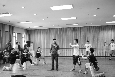 在《岳云》排練現(xiàn)場,記者看到了演員們在鏡前一絲不茍地嚴摳動作細節(jié),苦練基本功;聽到了一遍又一遍的音樂唱段的練習聲;主創(chuàng)們不時圍坐在一起,對舞美設計激烈討論。在嘗試高難度特技時,趙宇更是親自上陣,與演員們一起“飛檐走壁”,以期達到更好的演出效果。