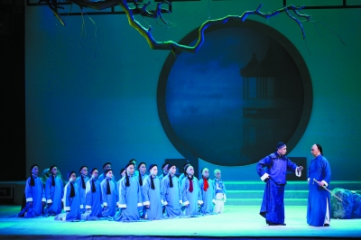 為了這部劇,70多歲的李仲鳴差點(diǎn)住了院。作為該劇的編劇、總導(dǎo)演,眼睛和手都不好使的他不僅多次往返于內(nèi)蒙古與北京之間,更是為劇本的創(chuàng)作完善數(shù)次熬夜加班,令創(chuàng)作團(tuán)隊(duì)大受鼓舞?!扒皟筛逦覀兓臼峭品酥貋恚钡降谒母鍖”疽捕疾粷M意,像個(gè)散文,沒有主線,場景設(shè)置也不太得體,我們就又聚在一起討論。最終確定了賈洪林和馬連良的師徒關(guān)系這條主線,總體把握一個(gè)‘情’字展開敘述的基本思路。”李仲鳴回憶,“抓住這一點(diǎn),戲就有譜兒了,他怎么認(rèn)識(shí)了賈先生,怎么崇拜賈先生,怎么通過賈先生學(xué)戲、偷戲,到收他為徒時(shí)賈先生故去,這是我們在結(jié)尾處留的遺憾?!?/p>