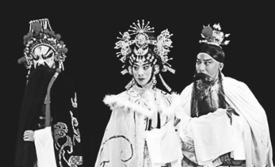急風式的入場“闖宮”突顯的是曹丕當斷則斷的機謀;《洛神賦》寄心曲,《七步吟》抗命運,烘托的是曹植詩章的風流與政治上的失意。最關鍵的是,甄宓在此劇中人神合一。她風姿綽約,詩情洋溢,如同天神般明麗照人,流光溢彩;她情感真摯,內心豐滿,又擁有一個平凡女人的溫柔情愫:她甘冒風雪為曹植送行;她體味意中人的《洛神賦》,失意悵惘;她糾結了兩兄弟對于文章、美人、王權的爭奪與情感沖突,她受命于曹操,擔當著無言的和解使命,她在情感與責任中謹守,她對曹植的愛褪盡了人神之戀的飄緲,她對曹丕的敬謹守了王妃的禮數,她在愛與敬重中徘徊,在精神漾溢與禮法約束中掙扎,正是這種種真實的情感還原了一個人,一個生動的女人。